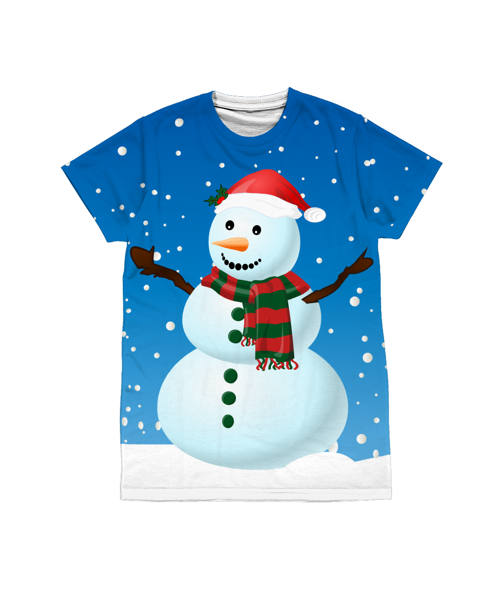 It’s a Snowman… – A custom all over print T-Shirt with snowy background on the back.