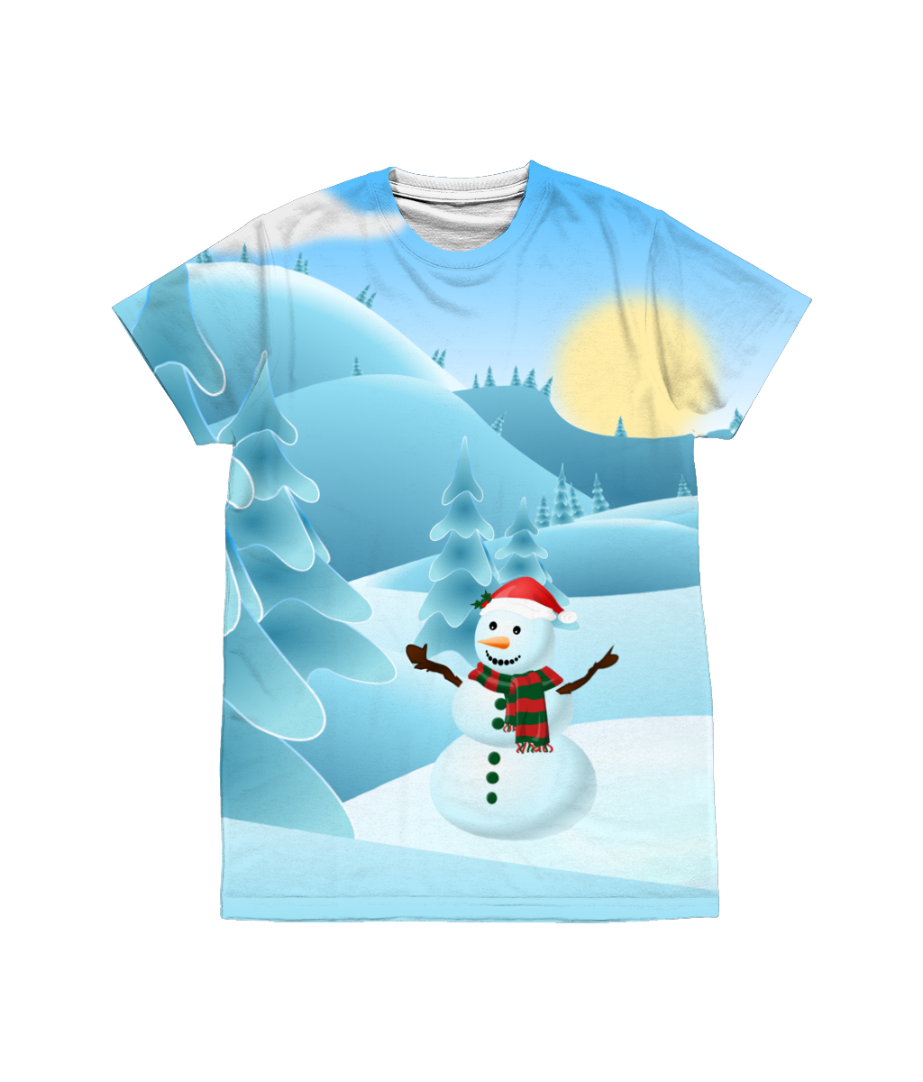 Snowman / Snow Scene T-Shirt All-over Reverse Print
