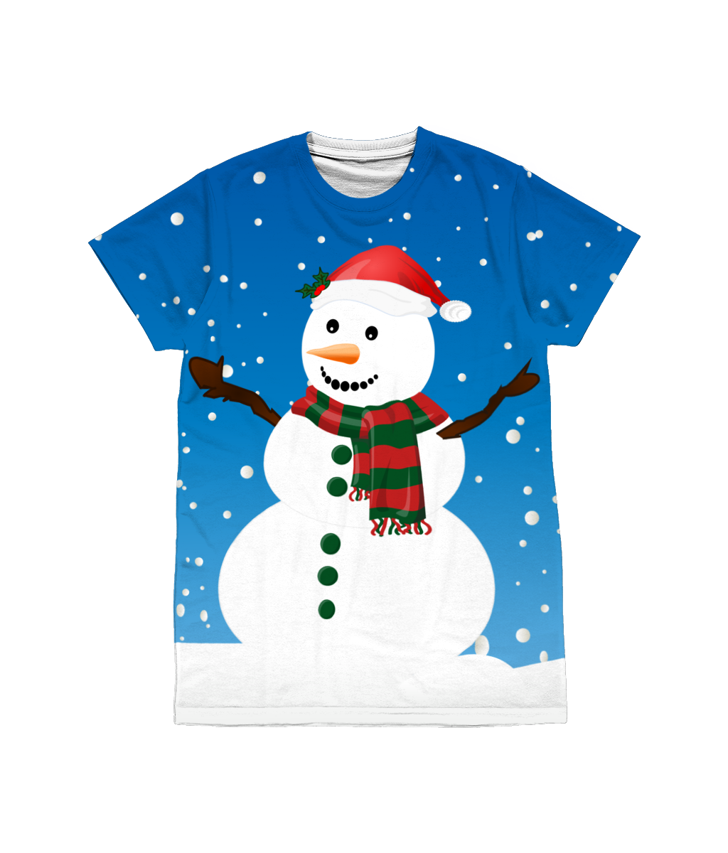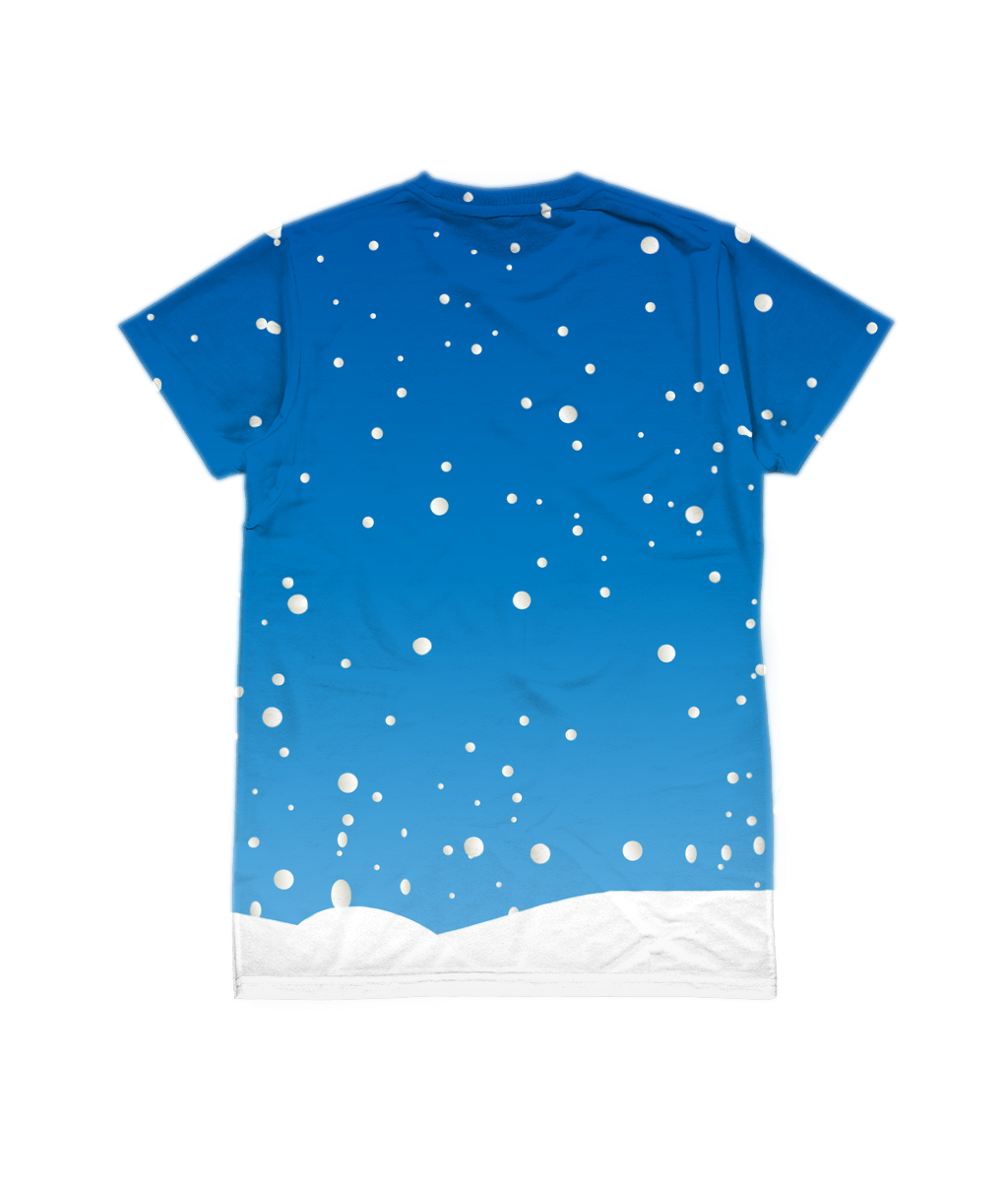 It’s a Snowman… – A custom all over print T-Shirt with snowy background on the back.